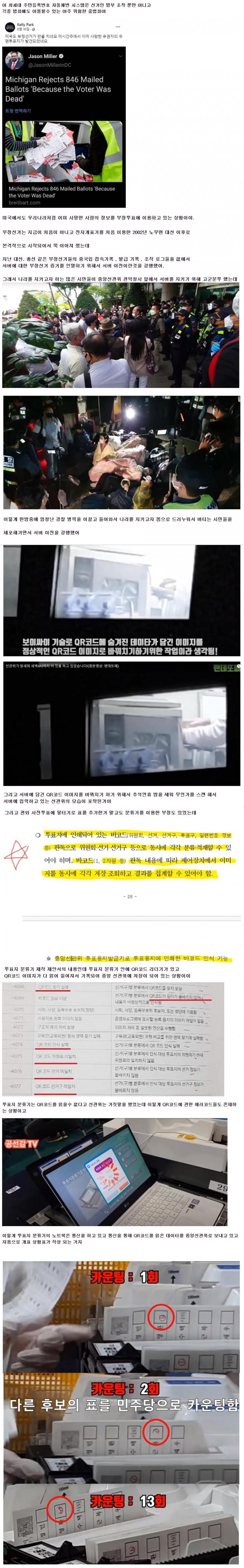 [투표지 분류기를 왜 국민이 공정하게 검증할 수 없는가? 부정과 조작이 없다면 무엇이 무서워 저렇게 투표 분류기를 엄호하고 방어하는가? 추석 전날 새벽까지 선관위 직원들이 모종의 작업을 밤새워 하는 것도 잡혔다. 이들의 모든 부정은 낱낱이 역사에 드러날 때가 온다! 숨길 수가 없을 것이다. 자유 민주제는 디지털 파씨즘을 깰 때 가능해 진다. 투표 연관 기기들을 전부 국민이 검증할 수 있도록 하지 않는다면, 선거는 모두 조작과 부정의 연속일 것이다].