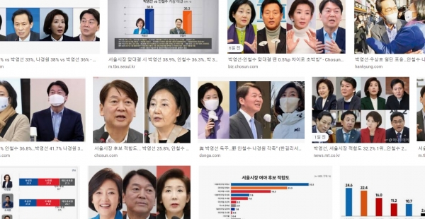 오는 4월 7일 치뤄지는 서울시장 보궐선거에 대한 후보자간의 선호도 여론조사가 가짜 논란에 휩싸였다.