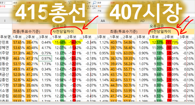 예를 들어, 차이는 4.15총선의 경우 1번과 2번 사이에는 각각 +15.68%와 -14.80%였고,