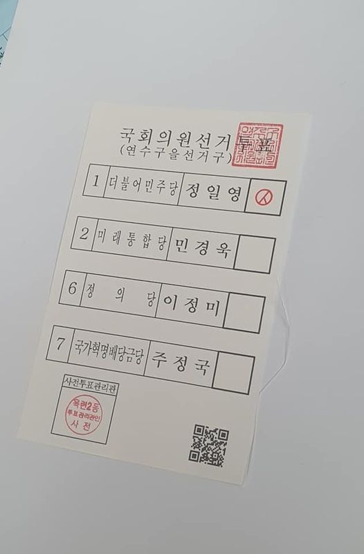 2. 아래 사진처럼 인쇄물을 잘못 절단한 절단 짜투리를 단 사전투표지를 직접 봄