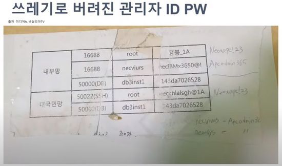 이런 가운데 파쇄되지 않은 채로 버려진 선관위 문서 중에는 선관위 메인 서버에 접속하는 최고관리자의 ID와 비밀번호(PW)가 고스란히 담긴 문건이 포함돼 부실 선거관리가 도마에 오를 전망이다. 이 사실은 한 메이저방송사가 단독 취재한다며 외부 공개를 말아 달라고 문건을 입수한 바실리아TV 등에 요청했지만, 시간만 흘려보내고 끝내 보도하지 않자 이번에 처음으로 공개한 것이다. 보도하지 않고 뭉갠 메이저방송이 어딘지는 밝히지 않았다.
