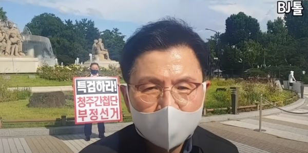 황 전 대표는 17일 문재인 대통령이 있는 청와대 앞에서 1인 시위를 진행하면서 청주간첩단사건과 부정선거의 진상규명을 위해 특검을 해야한다고 주장했다.