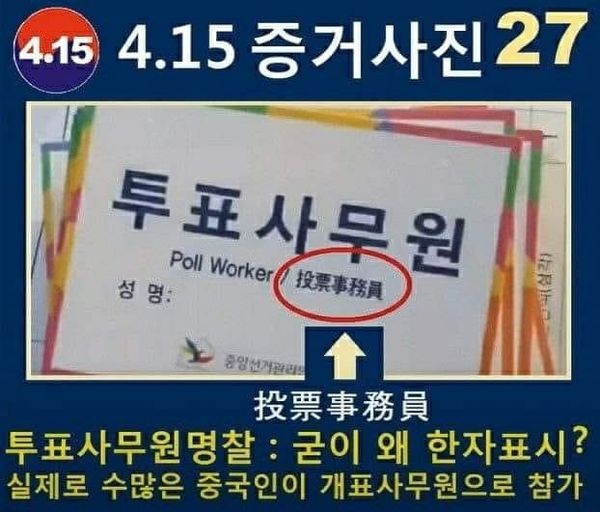 즉 이것은 막무가내적 인성이 강한 중공의 산물이라는 추측이 매우 강하게 든다는 점이다. 그것을 모를 리 없는 것이 선관위 직원들이다. 그들에게 선거 공보물 납품을 지정 장소로 배달해 보신 분이나 인쇄업종 종사자는 부인할 사람이 한 사람도 없음에 내 또 한 손모가지 건다.