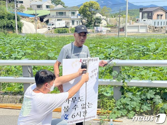 지난 2020년 서해상에서 북한군에 피살된 해양수산부 공무원 고(故) 이대준씨의 친형 이래진씨가 16일 문재인 전 대통령의 사저가 있는 경남 양산 평산마을에서 1인 시위를 벌였다. 사건 관련 대통령 기록물 공개를 촉구하기 위해서다.