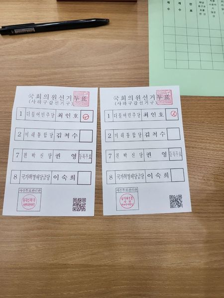 2022. 12. 2. 부산지방법원 서부지원에서 열린 제21대 국회의원 선거 사하갑 지역구에 대한 사전투표지에 대한 재검표 검증기일에서 정상투표지로 볼 수 없는 이상투표지들이 출현하였습니다.