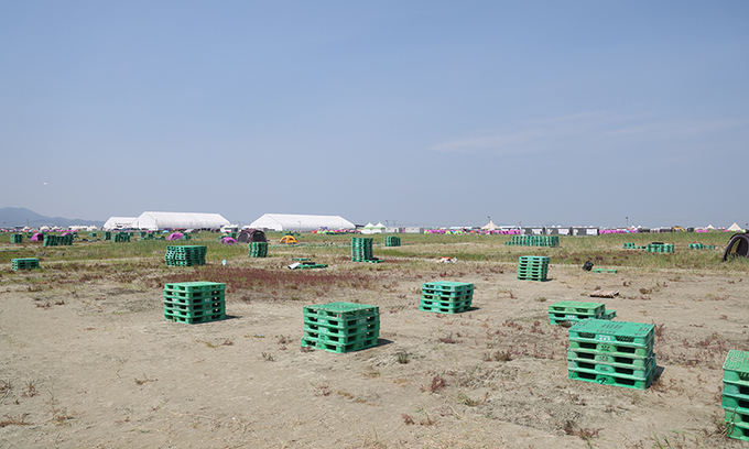 지난 6일 2023 새만금 세계스카우트잼버리가 열리는 부안군 야영지 내 영국 야영장에 빈 팔레트만 남아 있다. 영국이 잼버리 조기 퇴영을 결정하면서 전날 대부분 대원이 서울로 떠났다. 연합뉴스