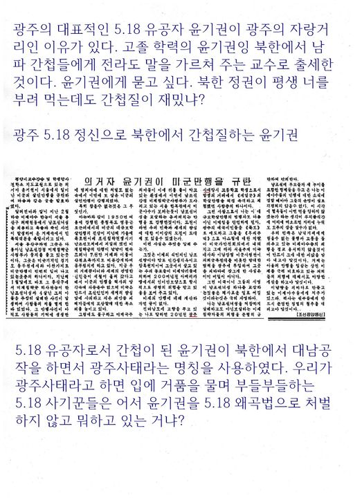 5.18 광주 사태에 주동적으로 참여했던 전남대생들이나 청년들은 윤기권 같은 반 자유 대한민국 사상으로 의식화된 자들이 태반이었다는 것이 나의 생각이다.
