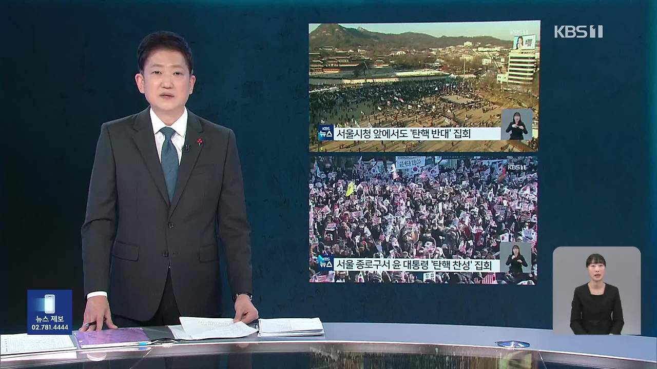 어제(11일) '서울 도심 탄핵 찬반 집회'를 전한 KBS 5시 뉴스 화면입니다. 탄핵 반대 집회 상황을 전하는 내용에 '탄핵 찬성 집회' 화면이 잘못 나갔고, 탄핵 찬성 집회 상황을 전하는 부분엔 '탄핵반대 집회' 화면이 잘못 방송돼 이렇게 바로잡았습니다. KBS는 방송사고 조사위원회를 꾸려 잘못된 화면이 나간 자세한 경위를 파악해 관련자에 대한 엄중한 조치를 취하는 건 물론 앞으로 이런 일이 일어나지 않도록 재발방지 대책을 마련하겠습니다.