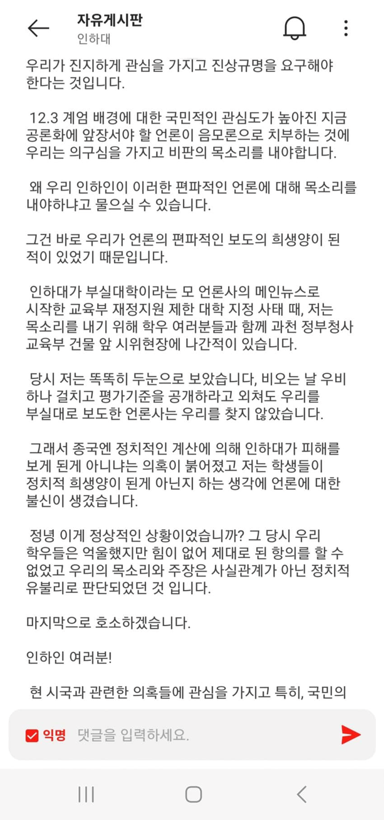 [인하대 학우들이여!]