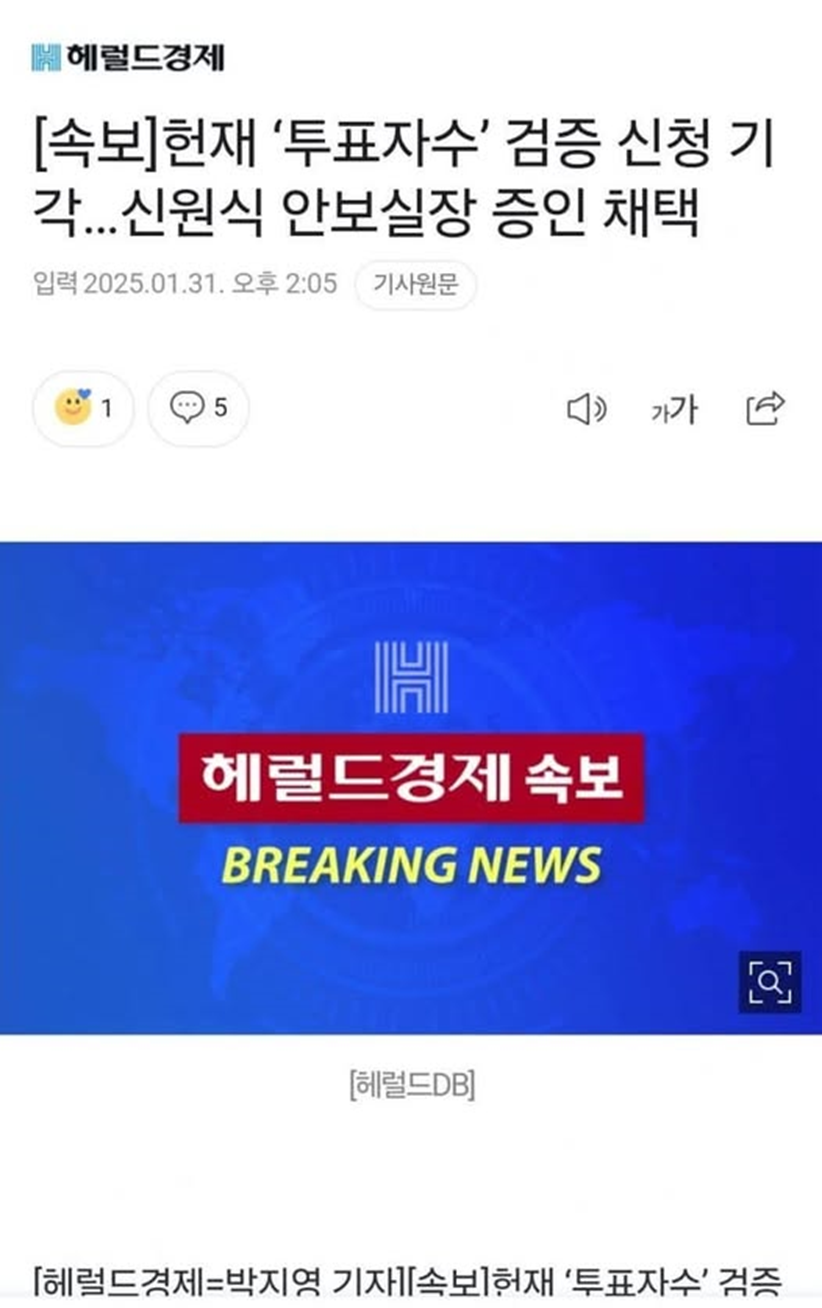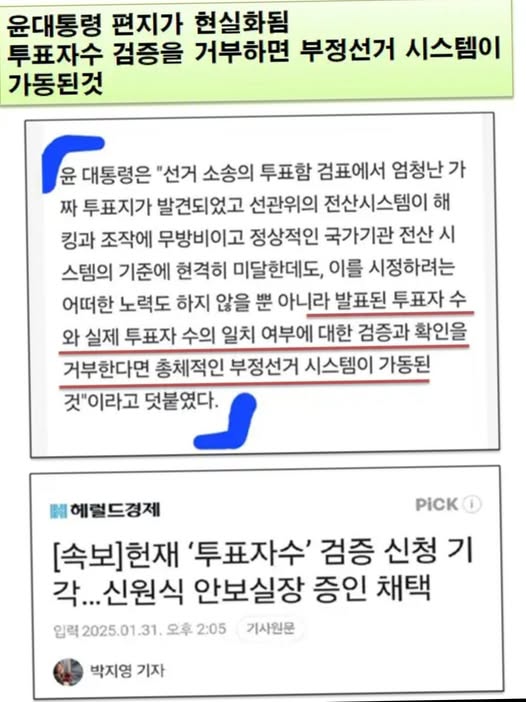 대통령이 부정선거 검증하려고 계엄했다고 투표자수 검증 신청했는데