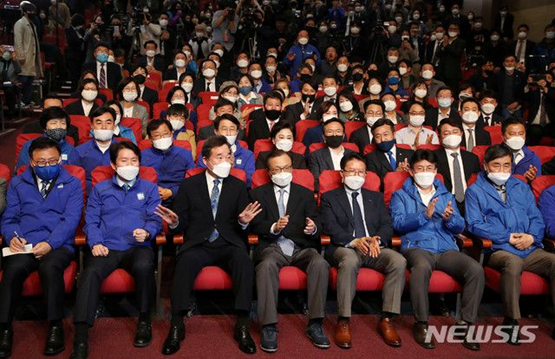 4.15 출구조사 발표 직후의 민주당 반응입니다.