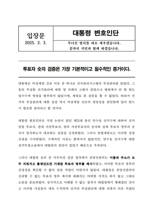 대통령이 부정선거 증거조사 요청해도 거부하는 사법부