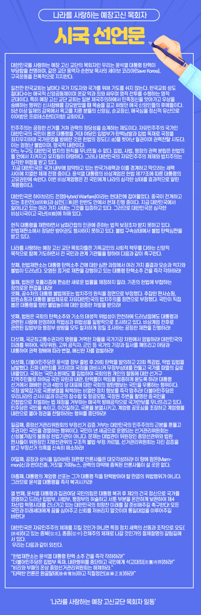 고려신학교파 (고신파) 나라를 사랑하는 예장 고신 목회자의 시국 선언문