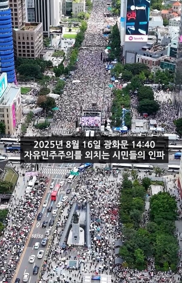 16일 광화문 일대에서 열린 ‘8·15 광복절 전국 국민대회’ 등에 주최 측 추산 1320만 명이 참가하는 전례 없는 인파가 모였다. 대구에서만 버스 60대, 포항에선 버스 34대가 서울로 올라오는 등 전국에서 애국 국민이 모여들었다. 서울 세종문화회관 앞부터 숭례문을 거쳐 서울역까지 전 차로를 가득 메운 국민은 현 정부의 주요 인사들에 대한 구호를 외치고 서명 운동을 전개하며 자신들의 목소리를 표출했다.