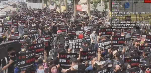 4.15총선 부정선거 의혹 규명 우한갤러리 블랙시위 거리 행진