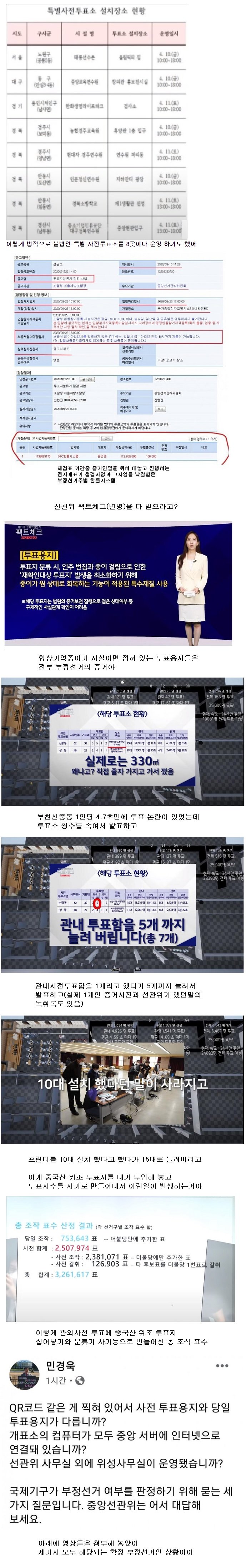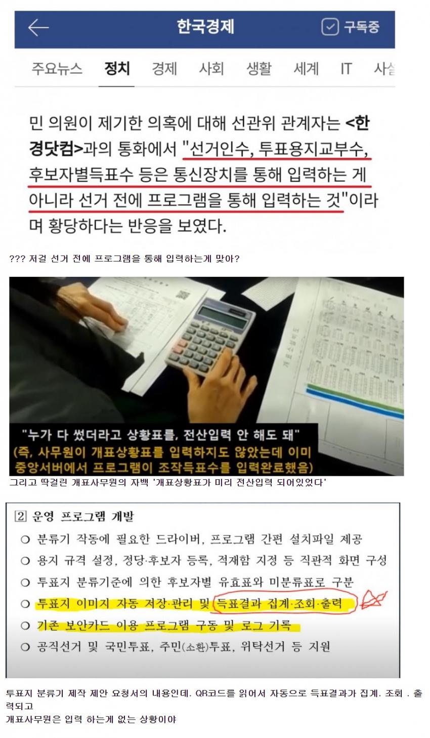 [투표지 분류기를 왜 국민이 공정하게 검증할 수 없는가? 부정과 조작이 없다면 무엇이 무서워 저렇게 투표 분류기를 엄호하고 방어하는가? 추석 전날 새벽까지 선관위 직원들이 모종의 작업을 밤새워 하는 것도 잡혔다. 이들의 모든 부정은 낱낱이 역사에 드러날 때가 온다! 숨길 수가 없을 것이다. 자유 민주제는 디지털 파씨즘을 깰 때 가능해 진다. 투표 연관 기기들을 전부 국민이 검증할 수 있도록 하지 않는다면, 선거는 모두 조작과 부정의 연속일 것이다].