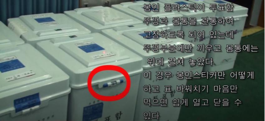 지난선거의 영상인데 이렇게 봉인 되어 있는 투표함이 뚜껑을 드니까 손쉽게 열리는 모습이야