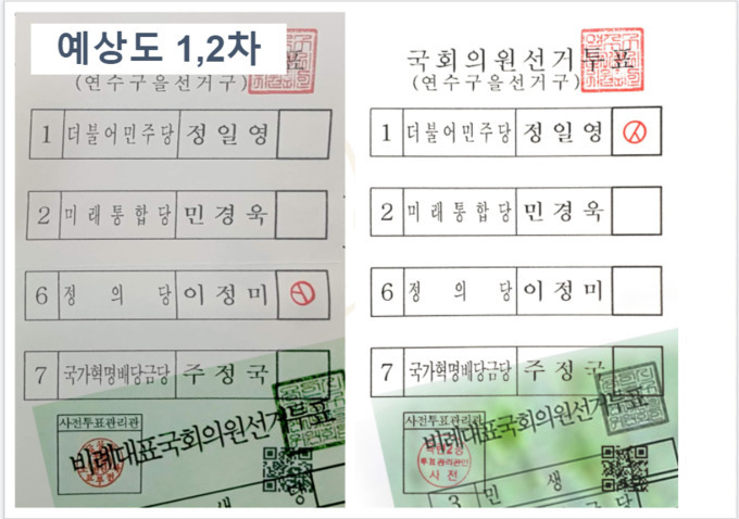 ⑴ 사전 투표 용지로써는 절대로 만들어질수 없는 투표지이다.