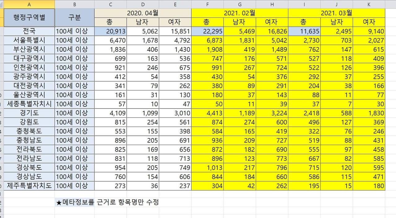 선거인 명부인데 100세 이상이 이렇게 많다.
