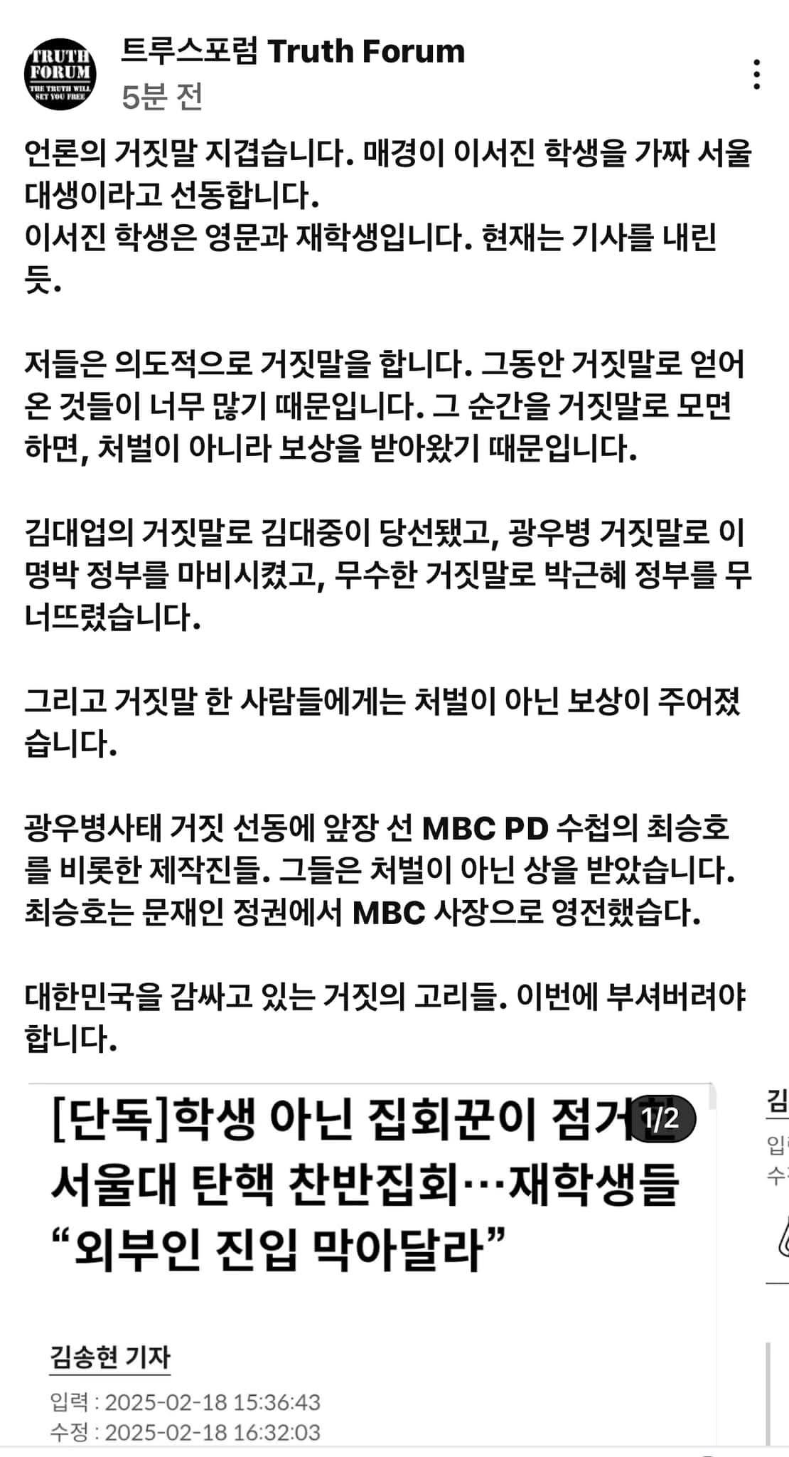 저희는 묻고 싶습니다. 누가 진짜 “내란” 세력입니까?