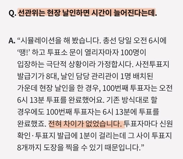 개인도장 찍으면 시간 더 걸린다는 선관위의 말 완전 거짓말이다!